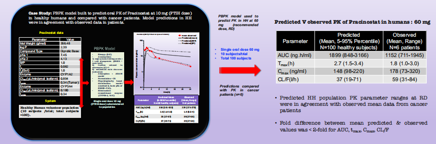 The strength of a PK model is evaluated by its ability to predict the behavior of the drug at a dose or regimen that is different from the dose for which the model was developed. When the model successfully predicts PK across dose levels or regimens its robustness and reliability increase. This is illustrated with a PBPK model developed for the HDAC targeted anti-cancer agent Pracinostat